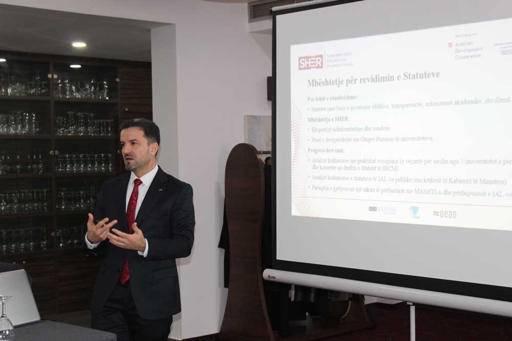 The event was opened by the newly appointed Director, Mr. Bardhyl Kabashaj, who expressed gratitude for the continued cooperation with SHER and highlighted key institutional priorities. In his address, Mr. Emurli, SHER Team Leader, provided an overview of SHER’s core activities and highlighted the progress and developments achieved through the SHER Programme. The meeting was joined by the heads of divisions of the Department of Higher Education and Science.